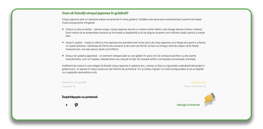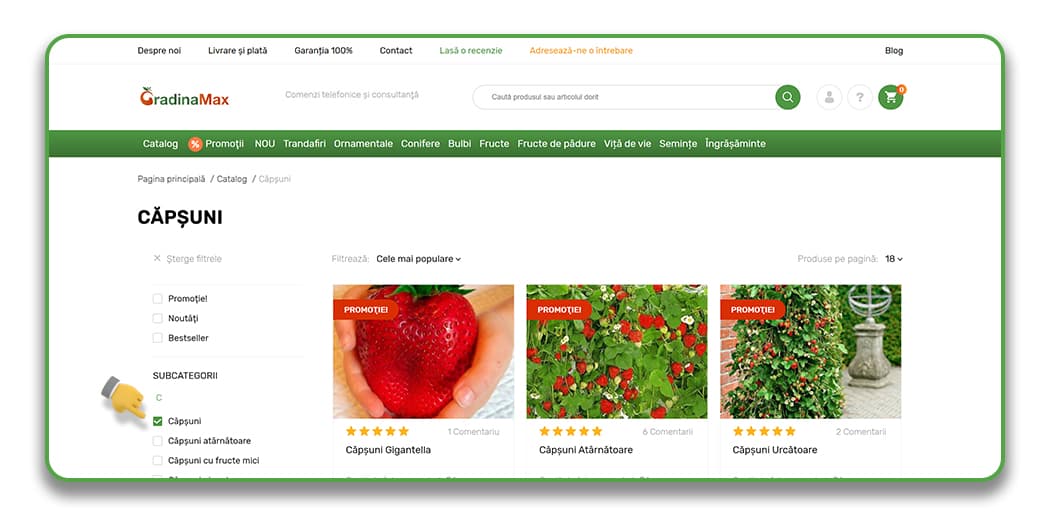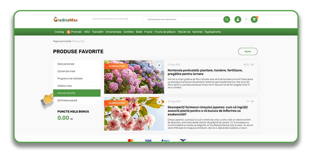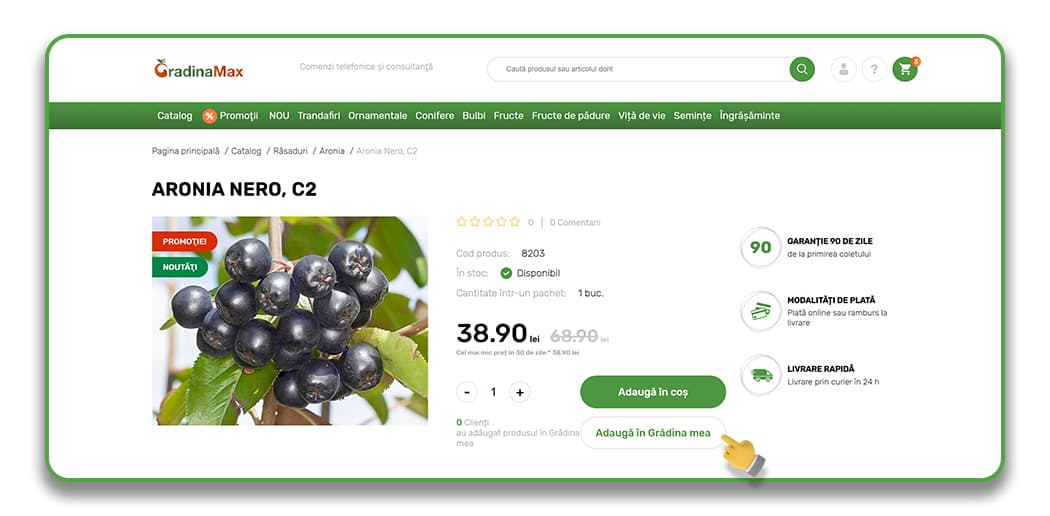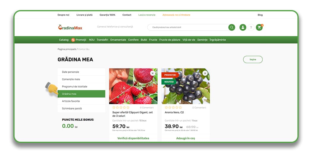 Adaugă articolele dorite în secțiunea "Grădina mea", iar când ești gata să plasezi comanda nu va trebui să le cauți din nou. Totul este la îndemână!