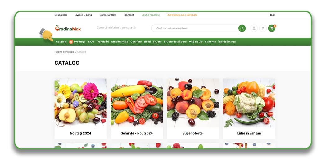 "Fă click pe "Catalog de produse" și accesează categoria de produse dorită"