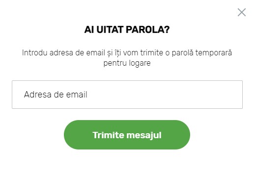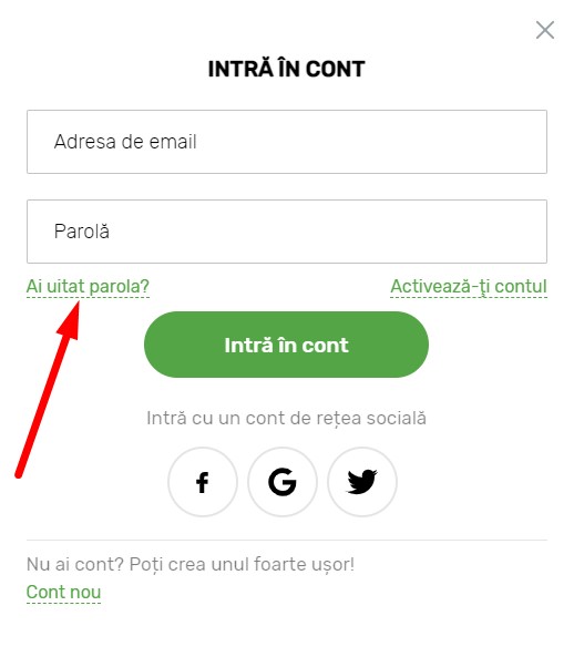 1. În fereastra de logare, dă click pe butonul "Ai uitat parola?", aflat sub câmpul de introducere a parolei.