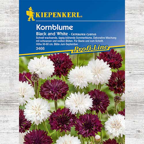 Black & White este un soi genial de albăstrele, cu creștere rapidă. Plantele erbacee sunt bine ramificate și pot ajunge la maturitate până la înălțimea de 60-90 cm. Pe suprafața tulpinilor apar frunzele verzi, lanceolate, iar la capătul lor sunt formate florile de culoare alb și bordo.