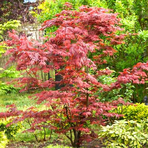 Este o specie arborescentă, ornamentală prin port și frunze. Frunzele căzătoare, profund lobate sunt colorate în nuanțe vibrante de roșu-arămiu, oferind arborelui un aspect foarte atractiv.