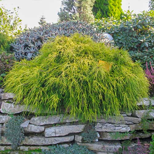 Conifer renumit pentru aspectul decorativ datorat frunzișului veșnic verde, crește sub forma unui arbust cu aspect globular, de culoare gălbui-vernil. Frunzele au forma aciculară-aplatizată, asemeni unor solzi.