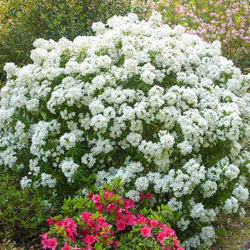 Un arbust ornamental, care atrage atenția prin aspectul exotic, deosebit de frumos. Soiul veșnic verde este decorativ în orice moment al anului. Pe parcursul lunii aprilie, dar și în intervalul lunar august-septembrie formează flori albe, gingașe, sub formă de stea. Ele emană un parfum deosebit, asemănător florilor de portocal.