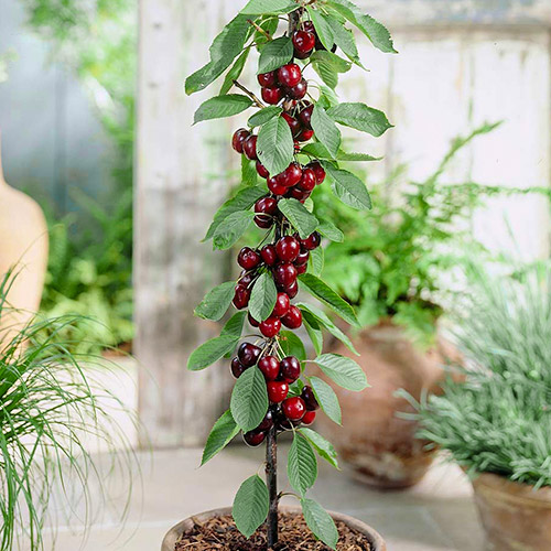 Cireșul columnar este favoritul cultivatorilor de pomi fructiferi, deoarece nu necesită mult spațiu pentru cultivare, dar oferă o recoltă bogată. Pomul zvelt, compact crește până la 2-2,5 m înălțime, iar ramurile sale arată ca niște pinteni. Randamentul este mare, fructele având greutatea de 10-12 g. Acestea sunt rotunde, suculente, roșii.