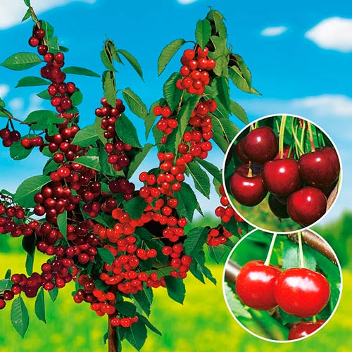 Cireș Duo – este cea mai bună idee pentru a avea într-un spațiu foarte restrâns două soiuri de pomi fructiferi. Acest soi a fost creat de grădinari profesioniști ce au reușit să crească două soiuri diferite pe un singur portaltoi.