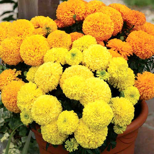 Crăițe pitice, amestec – sunt plante perene apreciate de către cultivatori datorită florilor ce au o inflorescență bogată, de formă globulară și culoare galben sau portocaliu.
