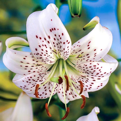 Frumusețea și unicitatea acestui soi de crini se datorează formei și culorii sale. La capătul tulpinilor verzi, înalte de până la 80 cm, se deschid florile fermecătoare de culoare alb imaculat, cu puncte bordo, ce ies în evidență în mod spectaculos. Pe lângă calitățile estetice, florile se remarcă și prin parfumul dulce, delicat, ce nu poate fi confundat.