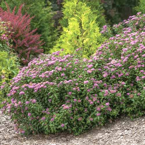 Taverna Double Play Artist este o plantă de foioase nepretențioasă. Coroana este compactă, în formă de minge. Înălțime și diametru de până la 0,9 m. Frunzele sunt alungite, cu margini zimțate, verzi cu o nuanță albăstruie, roșu-carmin când înmuguresc, devenind roșiatice-begricioase toamna. Florile sunt roz închis, cu stamine lungi, reunite în inflorescențe în formă de scut. Înflorește abundent din iulie până în octombrie. Designerii și grădinarii profesioniști folosesc de obicei acest soi pentru plantații de grup și individuale, în paturi și borduri. Soiul arată elegant ca gard viu.