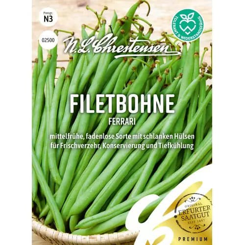 Ferrari este o varietate foarte productivă, de origine franceză, rezistentă la boli. Produce păstăi fideluță, lungi și drepte, de culoare verde, care pot fi culese din iunie până în septembrie. Păstăile de circa 13-14 cm sunt deosebit de populare printre consumatori, având gustul delicios și textura perfectă pentru consumul direct, prin conservare și congelare.