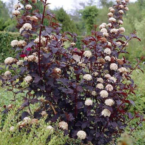 O varietate superbă de arbust decorativ prin port, frunziș și flori. Acesta se face remarcat prin frunzele lobate, de culoare violet-purpuriu închis, ce îmbracă ramurile dense. În perioada mai-iunie înflorește abundent, formând flori albe, grupate în buchete.