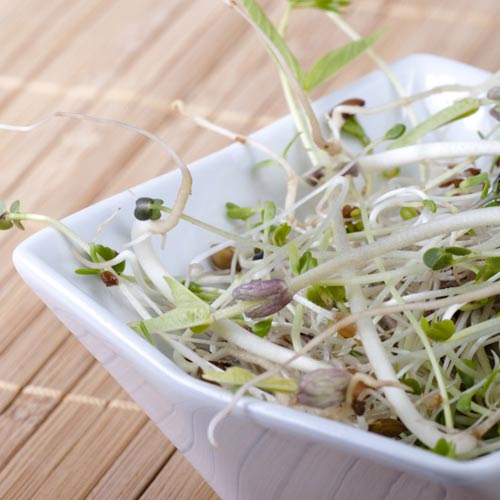 Semințele moi se spală în mod repetat, zile la rând, până când ele încolțesc și apar mugurii. Recipientul se scoate la soare sau la lumină, pentru înverzire, după care se pot consuma.