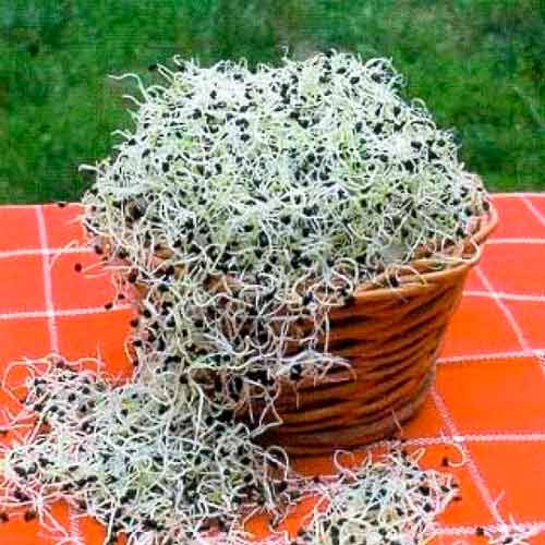 Semințele moi se spală în mod repetat, zile la rând, până când ele încolțesc și apar mugurii. Recipientul se scoate la soare sau la lumină, pentru înverzire, după care se pot consuma.
