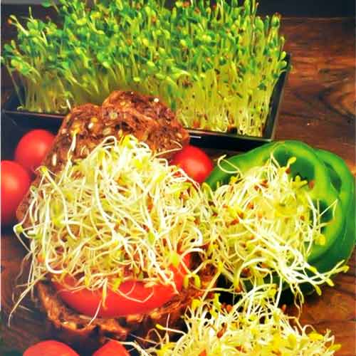 Semințele moi se spală în mod repetat, zile la rând, până când ele încolțesc și apar mugurii. Recipientul se scoate la soare sau la lumină, pentru înverzire, după care se pot consuma.