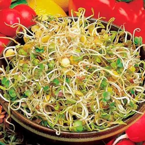 Semințele moi se spală în mod repetat, zile la rând, până când ele încolțesc și apar mugurii. Recipientul se scoate la soare sau la lumină, pentru înverzire, după care se pot consuma.