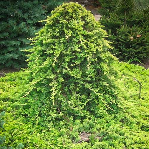 Un soi de conifer cu frunzișul veșnic verde, ce formează o coroană densă, compactă, de formă târâtoare. Frunzișul are forma aciculară aplatizată, cu aspect solziform. Aspectul său decorativ se datorează în special culorii verde-auriu, ce-și păstrează permanent intensitatea și prospețimea.
