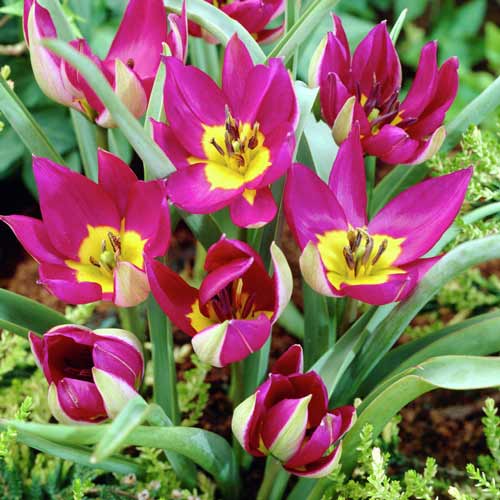 Flori de primăvară, unice prin coloritul deosebit, petalele mari, catifelate, înfățișând nuanțe intense de violet. Inflorescențele bogate fac notă discordantă în compozițiile grădinilor și parcurilor, rezultând un decor plin de viață și originalitate.