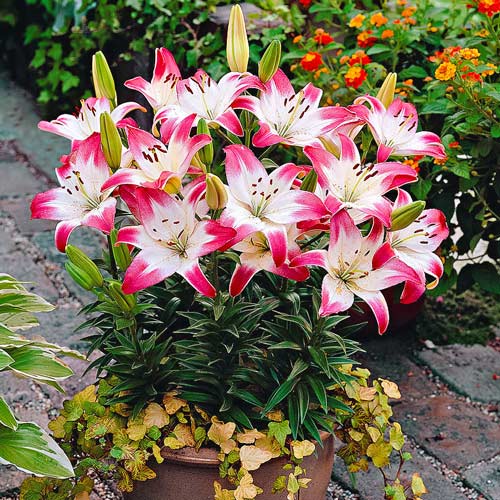 Este un soi exotic, unic, datorită aspectului deosebit pe care-l oferă grădinilor. Inflorescențele formate din petale mari, luxuriante, sunt considerate a fi de o eleganță aparte, inspirând un aer de rafinament și stil clasic. Albul pur al petalelor fine, este continuar spre vârful acestora, de o nuanță de roz-fucsia, care face ca impactul vizual să fie mai puternic. Este unul dintre soiurile preferate ale iubitorilor de flori, ceea ce se datorează și parfumului intens pe care acestea îl emană.