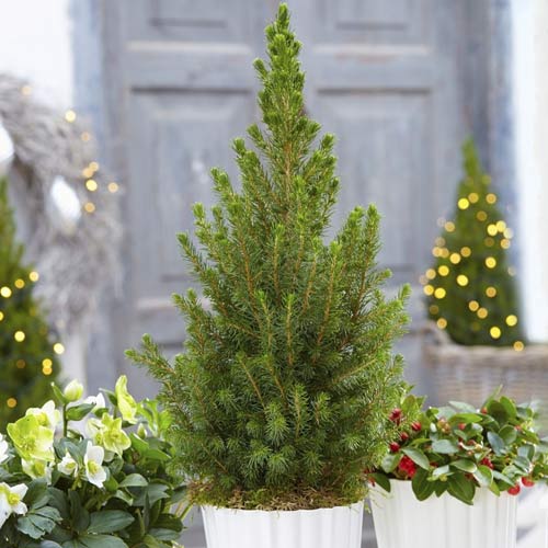 Molidul alb Conica este mult mai popular decât molidul clasic. Totul pentru că această specie creată de Mama Natură este uimitoare prin aspectul său. Este un soi cu creștere lentă, care formează forme conice frumoase și dense, alcătuite din ramuri rigide și subțiri bine strânse, care se termină cu un mugure la vârf. Molidul alb Conica crește foarte încet, aproximativ 10 cm pe an. Își păstrează forma pe măsură ce crește, deci nu necesită tăiere.
