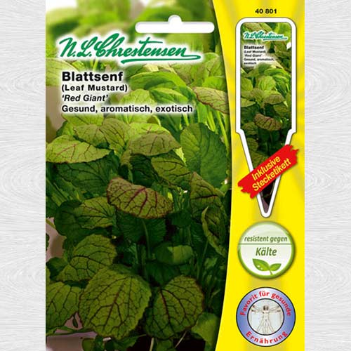 O specie rezistentă la boli, ce crește până la 20 cm înălțime, cu frunze mari și cărnoase. Acestea sunt ușor texturate, cu un gust puternic de muștar, ele fiind preferate ca și garnituri, în locul spanacului, sau în salate, dar și pentru a condimenta preparatele. Muștarul roșu este bogat în vitaminele A și C, potasiu, fier și calciu;