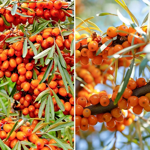 Un set excelent, care include două dintre cele mai populare și apreciate soiuri de cătină. Fructele au un conținut extrem de ridicat de nutrienți - un complex de multivitamine, care include vitamine extrem de importante pentru organism, precum B1, B2, C, PP, E și K și zeci de diverse oligoelemente.