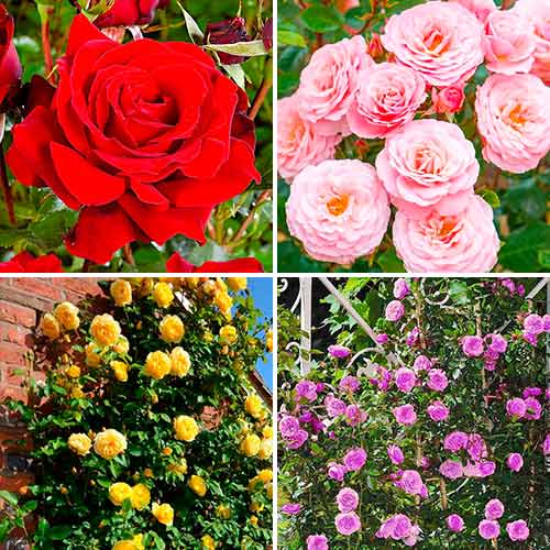Un pachet economic senzațional, care cuprinde 4 soiuri populare și deosebit de frumoase de trandafiri. Fiecare soi se remarcă prin formă și culoare. Roșu, violet, galben sau roz, trandafirii pot fi plantați individual sau grupat, formând un real spectacol de culori. Grădinile însorite vor căpăta un farmec aparte și vor atrage privirile tuturor.