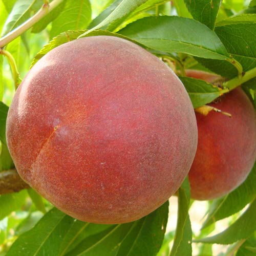 Soi de origine americană, care crește până la înălțimea de 2-3 m, dezvoltând o coroană formată din ramuri încărcate de fructe. Acestea au forma rotundă, coaja roșie-maronie, cu suprafața pufoasă. Pulpa galbenă este delicioasă, densă, cu o textură delicată și foarte suculentă. Cu un termen mediu de maturare, recoltele vor apărea în intervalul lunilor iulie-august, fiecare pom oferind până la 30 kg de fructe dulci/sezon,