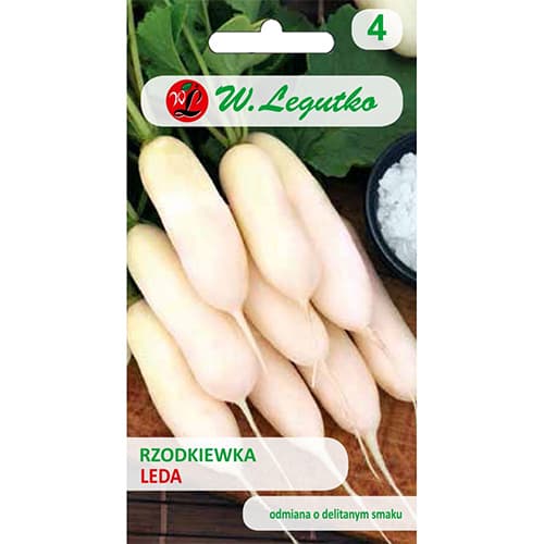 Leda este un soi excelent, foarte productiv, de ridiche albă. Semințele formează rădăcini cilindrice, lunguiețe, de culoare alb cremos, cu frunze verzi. Ridichile sunt cărnoase, fragede, ușor suculente și foarte aromate. Se recomandă consumul lor în salate sau lângă preparatele din carne, oferindu-le o notă de prospețime.