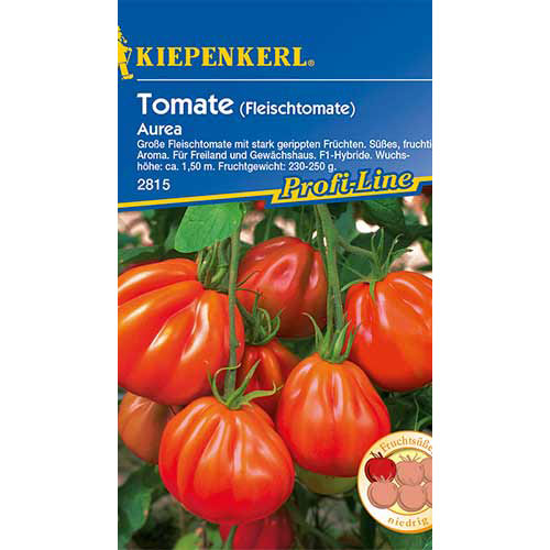 Aurea F1 face parte dintr-o varietate inedită, caracterizată prin gustul proaspăt și aromat al fructelor. Acestea au forma ovală, culoarea roșu aprins și pulpa foarte cărnoasă, ele fiind indicate preparării pe grătar, precum și sub formă de suc de roșii.