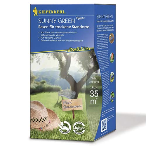 Semințe gazon pentru zone secetoase Sunny Green este o varietate de gazon foarte productivă, care garantează formarea unor covoare de iarbă dense, de culoare verde fraged. Firul ierbii este sănătos și viguros, rezistent chiar și la un trafic intens. Este un soi ideal pentru a înfrumuseța zonele stâncoase, curțile sau bordurile.