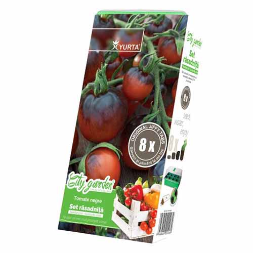 Unul dintre cele mai dorite seturi, care te ajută să înființezi rapid o cultură de roșii, chiar pe balconul casei tale. Pliculețul conține semințe de roșii negre, o varietate deosebită. Fructele sale pot fi culese din iulie până în august, când capătă culoarea roșu-închis, spre negru. Pulpa lor este fermă și suculentă, iar gustul este foarte aromat. Sunt potrivite pentru consumul proaspăt, cât și pentru prepararea sosurilor sau pastelor de roșii.