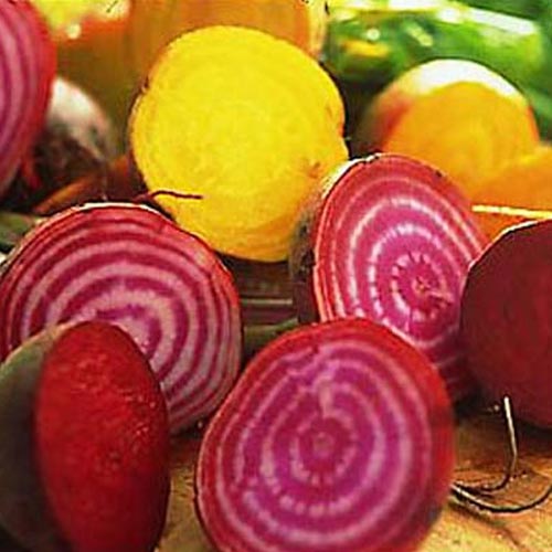 Acest amestec este dovada că sfecla nu se găsește într-o singură culoare, rădăcinile acestor legume pline de sănătate fiind portocalii, albe, galbene sau roz. Sfecla colorată, este utilizată în mod special pentru decorul preparatelor culinare, dându-le o notă de prospețime.