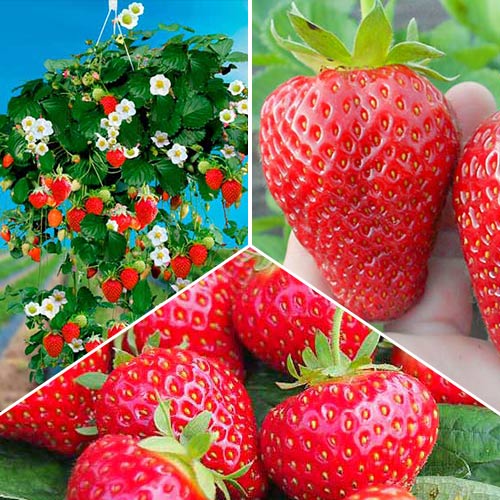 Căpşuni Ampelnaya remontant - Tufă luxuriantă, bogată în înălțime și lățime, cu tulpini secundare pline de flori, care rodesc, pe o singură plantă, până la 20 de fructe delicioase! Este recomandată creşterea pe suporturi sau spaliere. Florile și fructele cresc în condiţii de climă exterioară, din mai până în octombrie. În sere și solarii, rodesc pe tot parcursul anului, în condiţiile furnizării unui sistem de iluminat suplimentar, pentru a crea condiții favorabile coacerii fructelor. Primele roade se coc pe deplin în 4-5 săptămâni de la apariția florilor. Greutatea medie a fructelor variază între 50 şi 60 de grame. Fructele sunt dulci, cu o aromă delicată.