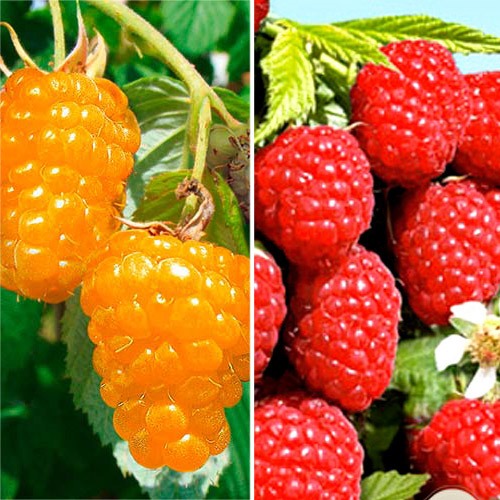 Zmeur pe tulpină Auriu - În ceea ce privește arbuștii fructiferi ai acestui soi, ei au o dezvoltare viguroasă, erectă, pe tulpină înaltă, ale cărui tulpini sunt puternice, putând susține cu ușurință recoltele bogate. La maturitate, pot crește în înălțime până la aproximativ 2 m, frunzele sunt mari de culoare verde-închis, iar fructele de culoare galbenă cresc des pe tulpini. Acestea au o formă conică, sunt de dimensiuni mari (10-12 g), iar pulpa lor este fermă, suculentă, cu un gust dulceag, intens aromat.