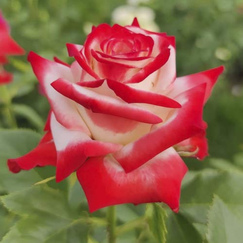 Trandafir cu flori mari Empress Farah - acest soi se deosebește de alți trandafiri prin combinația rară și elegantă de culori strălucitoare, cu o nuanță crimson distinctă pe marginile petalelor. Această eleganță și aerisire a florii au contribuit la atribuirea acestui nume. Arbustul crește puternic, ajungând la 125 cm înălțime și 80 cm lățime.
