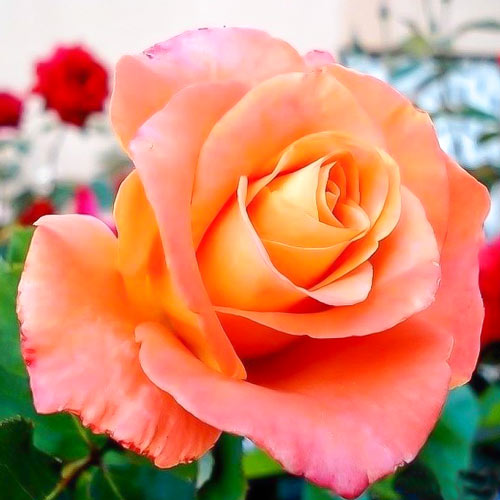 Trandafirul Exotica crește până la înălțimea de 90-100 cm, formând tufe bogate cu frunze verzi, lucioase și inflorescențe formate din flori mari de culoare portocaliu, cu un diametru de 14 cm.