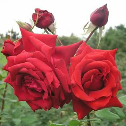 Anderson este un soi clasic de trandafir ce înfloresc în abundență, inflorescențele mari împodobind tufele dense.. Florile cu diametrul de circa 7-8 cm, sunt alcătuite din petale catifelate, dispuse în straturi multiple, suprapuse. Datorită culorii trandafirii se aseamănă foarte mult cu florile de mac, ei fiind roșii, cu mijlocul de culoare galben.