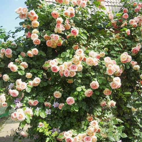 Privind la acest trandafir urcător, cu ale sale flori de culoare alb și roz, simți că îți insuflă bogăție, inocență și noblețe. Cu diametrul florilor de 9 cm, el poate ajunge la înălțimi de 110-140 cm. Spectacolul înflorescenței se desfășoară de-a lungul perioadei mai – octombrie.