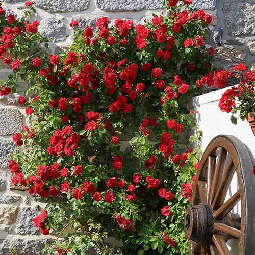 Trandafirul cățărător Paul's Scarlet este un cultivar consacrat care a apărut în urmă cu peste 100 de ani și a câștigat popularitate în întreaga lume pentru înflorirea sa abundentă și de lungă durată. Arbustul crește până la 3 metri înălțime. Bobocii semimarginali în formă de cupă, cu o nuanță de roșu carmin, sunt foarte saturați, ceea ce le conferă un aspect foarte elegant În vârful verii, aceste culori se estompează până la o culoare vișinie. Floarea pe jumătate plină are până la 7 cm în diametru. B. Florile sunt grupate în inflorescențe, iar pe fiecare tulpină pot fi observați până la 5 muguri. Rose Paul's Scarlet este folosit pentru a decora ramuri înalte, forme de grădină și diverse clădiri.
