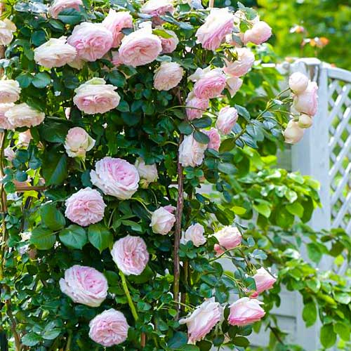 Arbust de până la 3 metri în înălțime. Suprafața minimă necesară pentru creșterea optimă a plantei - aproximativ 2,5 mp. Florile sunt mari, de până la 12 cm în diametru, cu petale exterioare de culoarea laptelui, spre crem și petale interioare de culoare roz luminos. Un singur boboc poate avea până la 70 de petale, care se deschide într-o floare luxuriantă și delicată, deseori asociată cu imaginea vilelor vechi, clasice, cu parcuri cu iedera și alei încărcate de flori.