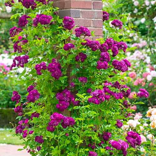 Acest trandafir a fost crescut de crescătorii australieni și putem spune despre el că îi priește grozav în regiunile cu ierni lungi. Florile groase mov se formează pe ramuri flexibile, aproape fără spini, de până la 4 m lungime. Petalele de culoare vișiniu-violet se deschid treptat și devin aproape albastre. Ciorchinii voluminoși au până la 30 de muguri în același timp. Acest soi împletește rapid garduri, pergole și chiar copaci.