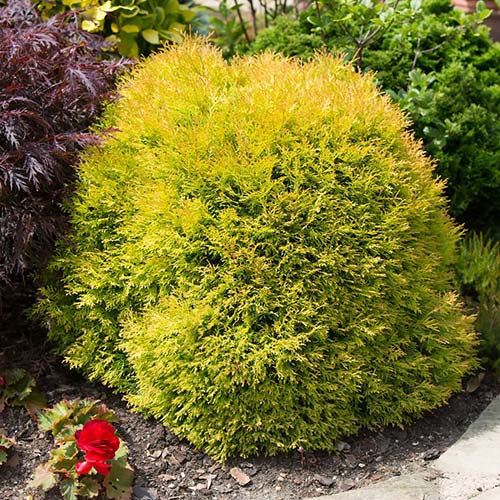 Conifer foarte popular, fiind o alegere excelentă pentru decorul grădinilor mici. Cu o creștere lentă și o formă globulară, acesta este compus din ramuri dense, îmbrăcate în frunze de culoare galben-arămiu, primăvara devenind galben-strălucitoare.