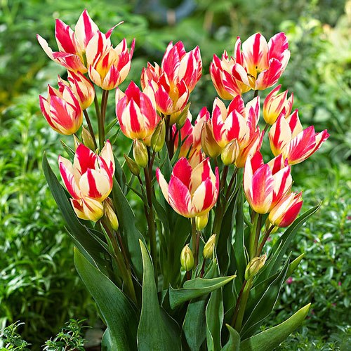 Este un soi de neînlocuit când vine vorba de inflorescențele bogate, formate din flori tricolore, așa cum și denumirea ne sugerează, care nu dau greș niciodată în ceea ce privește crearea unor efecte decorative spectaculoase. Înflorește la mijlocul primăverii, an de an florile păstrându-și intensitatea mixului tricolor, compus din nuanțele calde de roșu și galben, parcă răcorite de albul imaculat ce contrastează perfect suprafața lor. Este un soi unic, rar întâlnit, fiind foarte solicitat pe piața florilor.